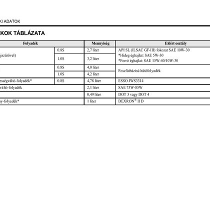 Folyadékok táblázata