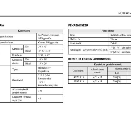 Karosszéria méretei